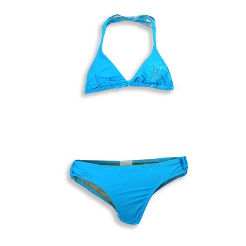 Beach Native - Girls 2 Piece \"K\" Initial Bikini Bathing Suit, Turquoise, Triangle Style Top With Tie Behind Neck, Elastic Strap Around Back With Clasp Closure, Decorative Bow With Beads, Rhinestone \"K\" Initial, Bikini Bottoms, Matching Side Ties, Fully Lined, Body 85% Nylon 15% Spandex Lining 100% Polyester, #18948
